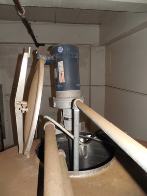 Approximately 560-Gallon Process Equipment Corp. Perma-San Permanently Sanitary Stainless Steel Tank. 48″ Dia. X 72″ Straight Side. Flat Top, Concave Bottom w/ Associated Legs, Clamp On Agitation Mixer.