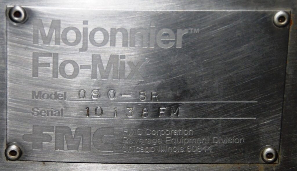 Mojonnier Model QSO-SR Standalone Flo-Mix Mounted On Stainless Steel Tubular Frame With Electrical Controls For Carbo-Cooler